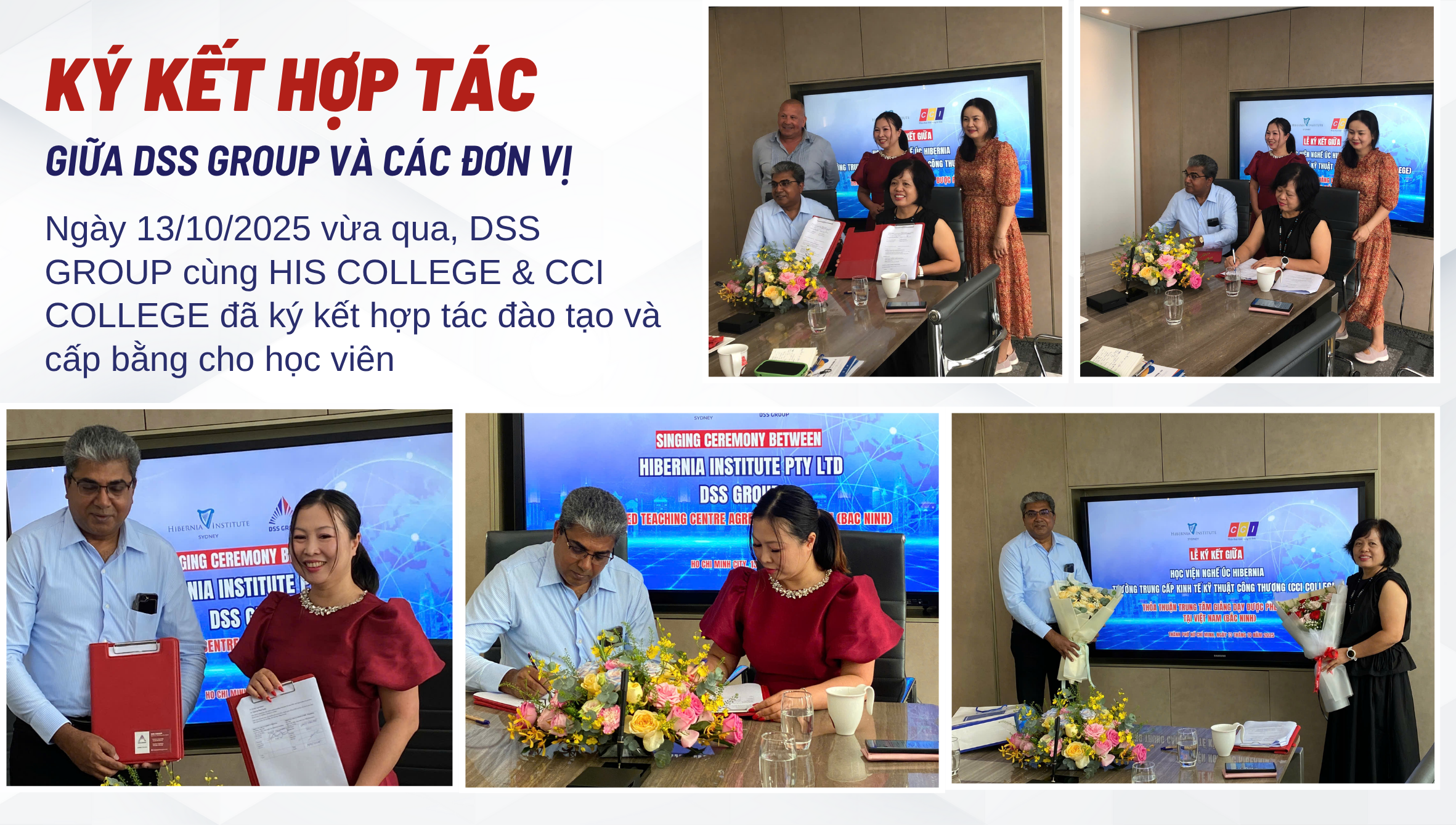 Lễ ký kết hợp tác đào tạo và cấp bằng giữa DSS Group – HIS College – CCI College (Australia) đã diễn ra thành công tốt đẹp, đánh dấu một cột mốc chiến lược trong hành trình mang chuẩn đào tạo nghề quốc tế đến ngay tại Việt Nam.